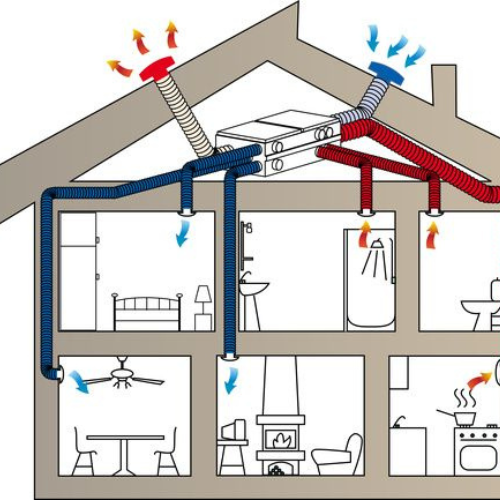 - Troca de calor: Os dois fluxos de ar (o ar que sai e o ar que entra) passam por um trocador de calor em caminhos cruzados. Nesse processo, o calor do ar expelido é transferido para o ar fresco que está a entrar, sem que haja mistura entre eles.